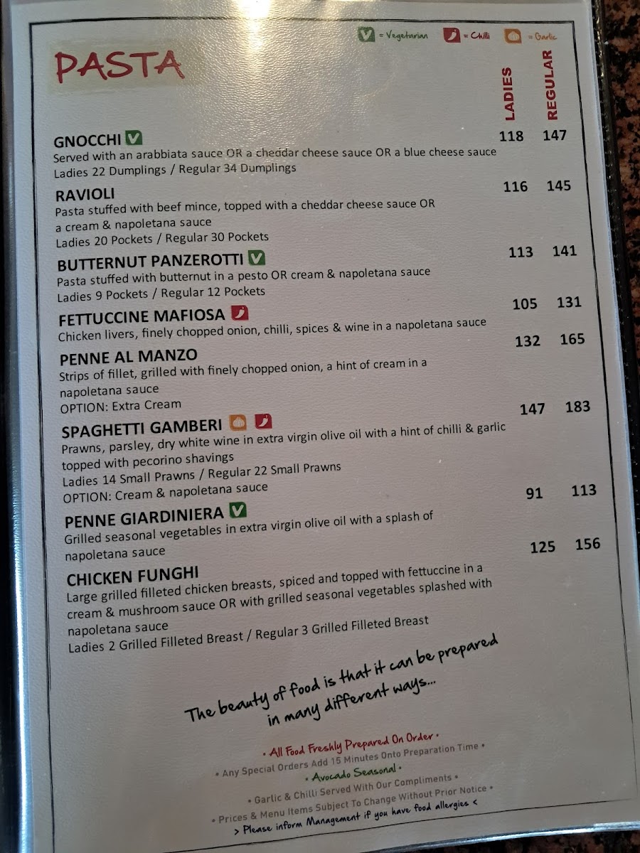 Pasta stuffed with beef mince, topped with a cheddar cheese sauce or a cream & napoletana